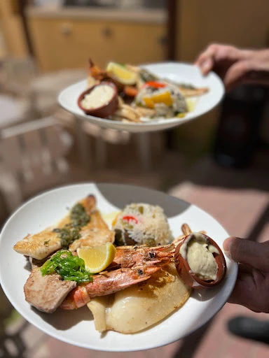 La carte célèbre les spécialités de la région avec une passion évidente pour les produits de la mer toujours frais. Les moules marinières sont leur classique méditerranéen—moules fraîches du bassin de Thau cuites dans un bouillon de vin blanc, ail, persil, échalotes. Le fumet était parfumé, les moules charnues et savoureuses. Servies avec des frites maison et du pain frais pour saucer, c'était exactement ce qu'on veut manger face à la mer. Les encornets farcis montrent une maîtrise de la cuisine provençale. Les encornets étaient tendres, la farce (chair d'encornets hachée, chapelure, ail, persil) généreuse, et la sauce tomate provençale liait le tout. La rouille sétoise—cette spécialité locale à base de poivrons rouges, ail, huile d'olive—accompagnait parfaitement. C'est un plat technique qui demande du savoir-faire, et ils le réussissent bien. Les pizzas cuites au feu de bois apportent cette dimension italienne à la carte. J'ai pris une pizza fruits de mer—pâte fine croustillante avec ces bords légèrement carbonisés caractéristiques du feu de bois, garnie de fruits de mer frais (moules, crevettes, calamars), sauce tomate, ail. Simple mais délicieuse. Les desserts faits maison complètent une offre culinaire riche et variée. J'ai goûté leur tarte au citron—pâte sablée, crème citronnée acidulée, meringue légère. Fait maison, pas de doute. Les produits de la mer, toujours frais, sont à l'honneur, reflétant l'engagement du restaurant envers la qualité et l'authenticité.
